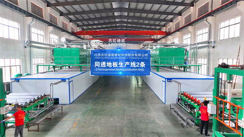 江西吉拉迪諾建材科技股份有限公司,占地面積近300畝,建筑面積13萬(wàn)多平方米,總投資5億元,擁有20余條生產(chǎn)線,員工近300人?,F(xiàn)有SPC石晶地板生產(chǎn)線十條、德國(guó)豪邁開(kāi)槽線兩條、大型商用卷材生產(chǎn)線四條、水墨彩印生產(chǎn)線兩條、同透地板生產(chǎn)線兩條,超大型運(yùn)動(dòng)地板生產(chǎn)線一條、是彈性地板行業(yè)產(chǎn)能量大,硬件實(shí)力強(qiáng)的生產(chǎn)廠商之一。