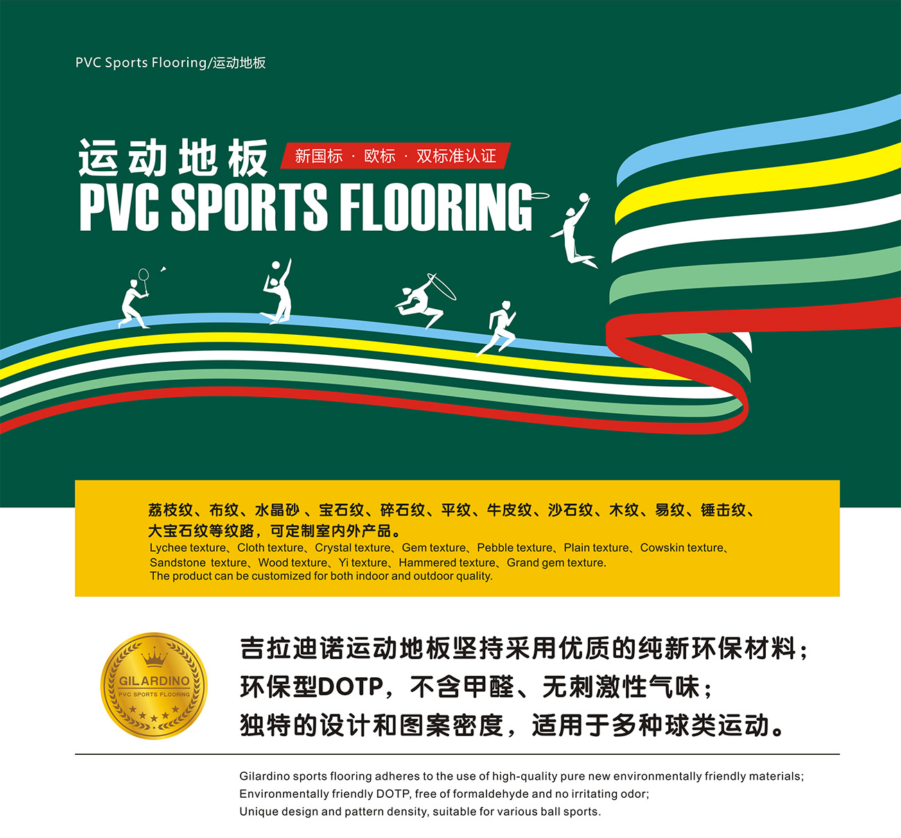 運(yùn)動(dòng)地板紋理:木紋/寶石紋/碎石紋/沙石紋/水晶砂/布紋/平板/荔枝紋/牛皮紋/定制紋理