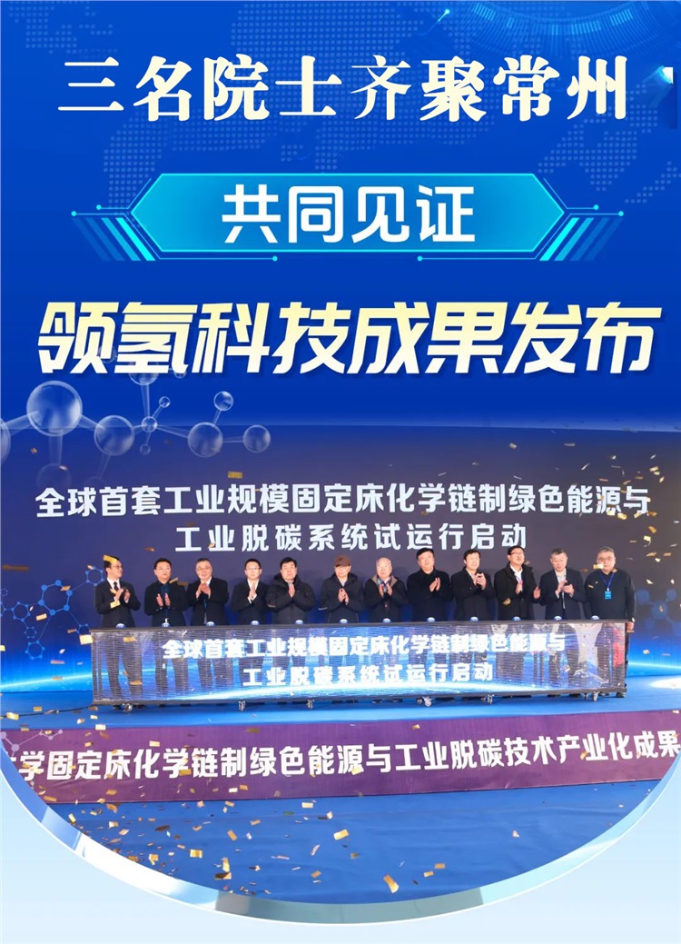 2024年12月18日,全球首套工業(yè)規(guī)模內(nèi)熱式多級固定床化學(xué)鏈應(yīng)用系統(tǒng)在常州領(lǐng)氫科技試運行,這標(biāo)志著我國在化學(xué)鏈制綠色能源與工業(yè)脫碳關(guān)鍵技術(shù)領(lǐng)域取得重大突破,達(dá)到國際領(lǐng)先水平。中國工程院院士郝吉明、岳光溪、李陽以及多名教授專家學(xué)者及知名企業(yè)家現(xiàn)場見證。《常州日報》更是在頭版刊發(fā)要聞《全球首套“化學(xué)鏈制氫”系統(tǒng)落地金壇》,報道領(lǐng)氫科技全球首套“工業(yè)規(guī)模內(nèi)熱式多級固定床化學(xué)鏈應(yīng)用系統(tǒng)”啟動試運行。